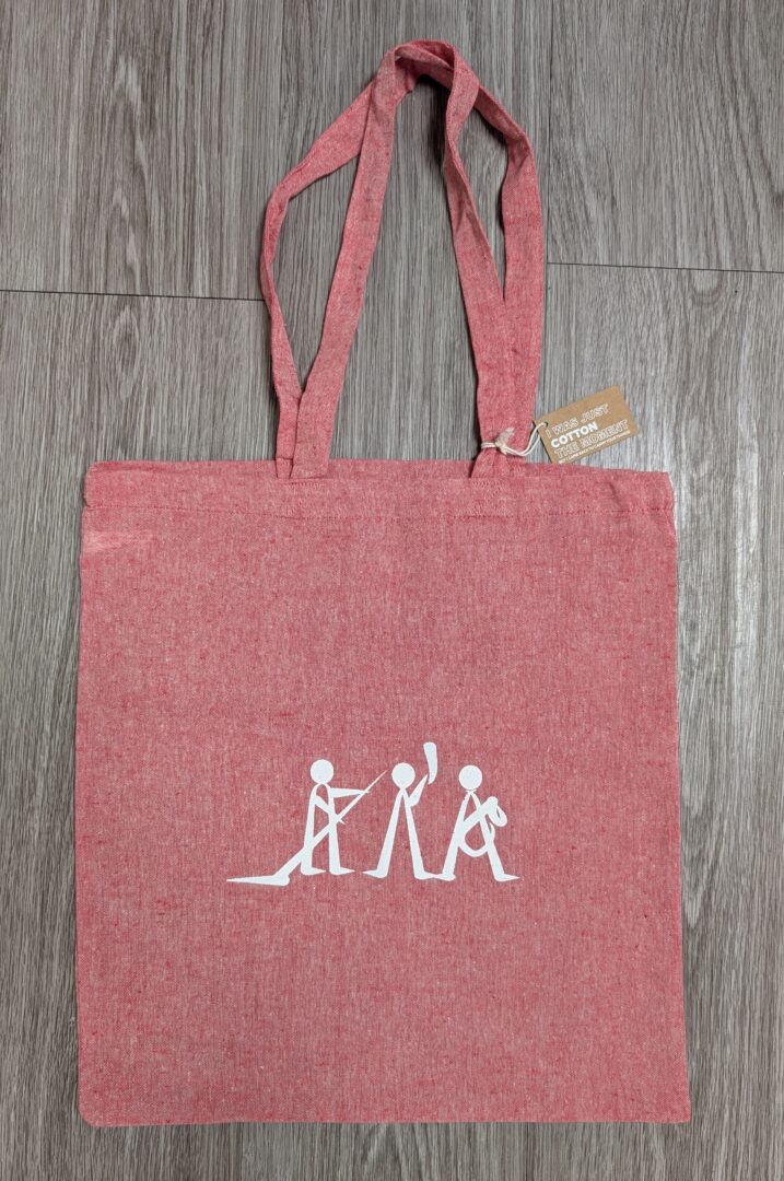 Recycled poly-cotton tote bag with the CCG Logo Stick Figures printed on 1 side. Size: 16.5″ (H) x 15″ (W)